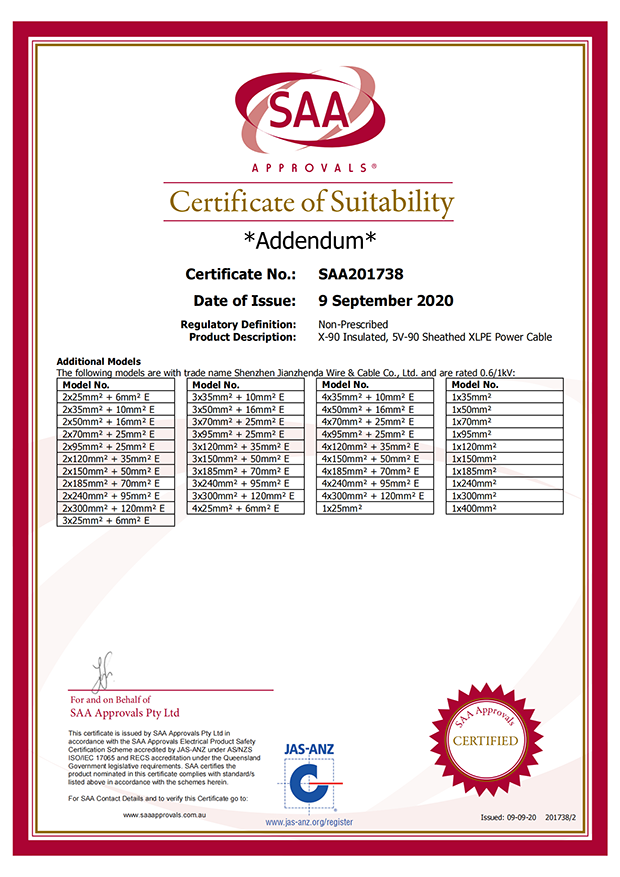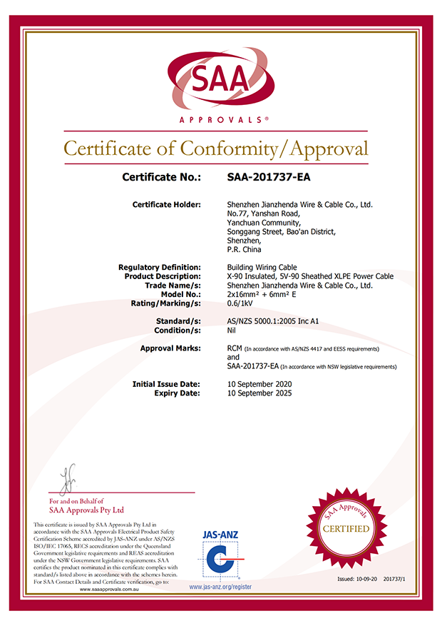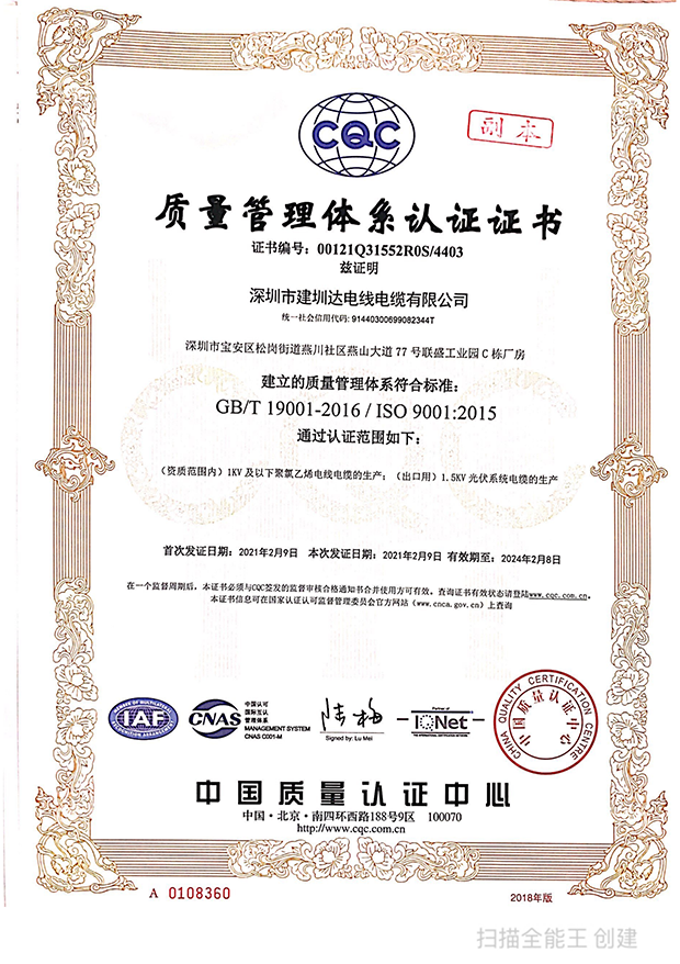 深圳建圳達(dá)電線電纜有限公司,成立于2000年,是一家電線電纜制造商,我們通過(guò)了世界各地不同市場(chǎng)的多數(shù)認(rèn)證,如:CCC、RoHS、CB、SAA、TUV、VDE、PSE、BPS、UL、CSA。我們根據(jù)定制產(chǎn)品不斷更新新的認(rèn)證。經(jīng)過(guò)數(shù)十年的發(fā)展,我們與來(lái)自世界各地的客戶建立了長(zhǎng)期的合作關(guān)系。我們?cè)?jīng)是菲律賓機(jī)場(chǎng),,柬埔寨的電力站,美國(guó)的醫(yī)院,工廠,埃塞俄比亞的水電站項(xiàng)目。我們是一家值得信賴(lài)的電線供應(yīng)商。